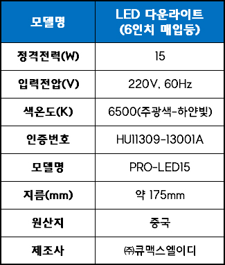 [특가]큐맥스엘이디 LED다운라이트 6인치 친환경 절전형 조명 LED등기구 매입등