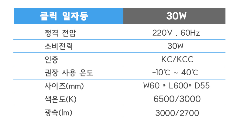 남영전구 클릭 일자등 30W LED조명 등기구 가정용 사무실용